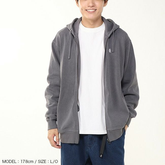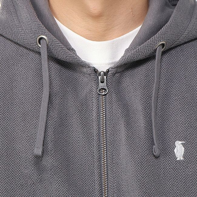 ヘリンボーン柄を取り入れたスウェットジップフーディー。