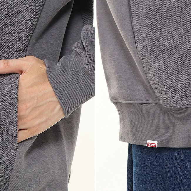 ヘリンボーン柄をCHUMSらしくアレンジした、“Troutbone”シリーズのスウェットジップフーディー