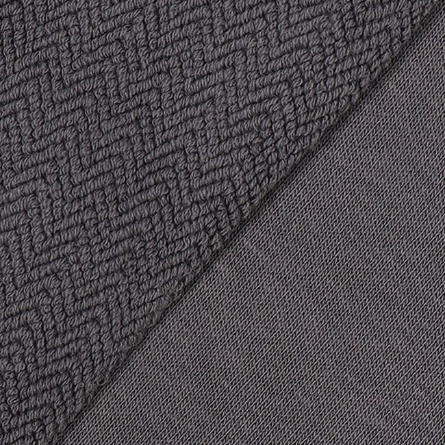 素材は、裏毛生地のパイル面にヘリンボーン柄を施したスウェットシリーズ。