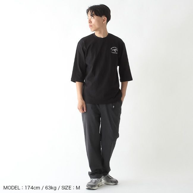 胸元にワンポイントのロゴを施した、七分袖のTシャツ