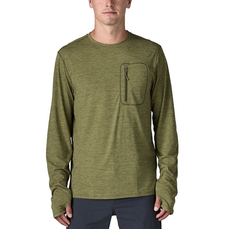 リサイクル・ポリエステル100%のジャージーを使用したキャプリーン・クール・サンはパタゴニア製品の中で最もサンプロテクションに優れたテクニカル・Tシャツで、水上で太陽にさらされる長い日々や山で汗だくになる体のための微気候を管理するデザイン。