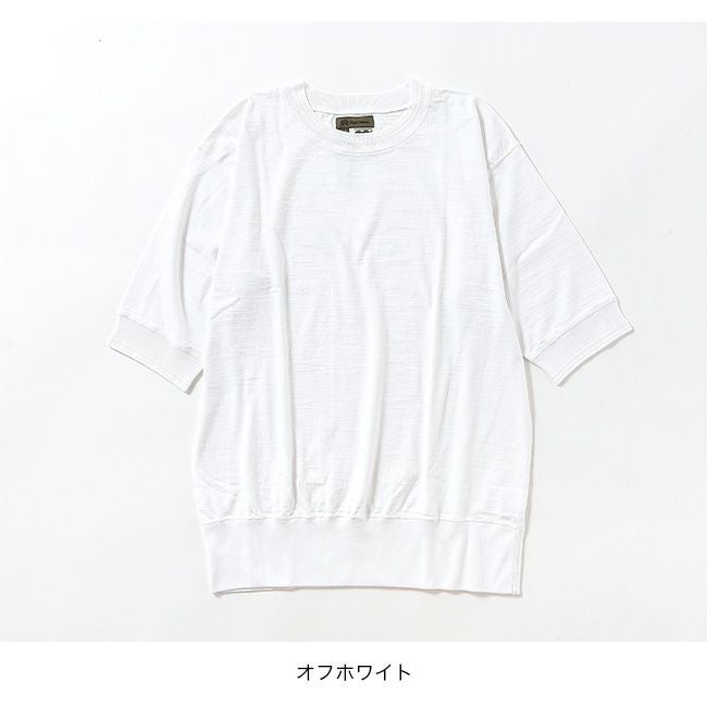 コットン100%のスラブ糸を使い、丸同天竺に編み上げています。