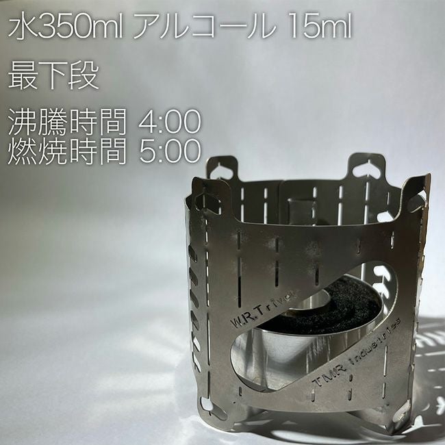 ストーブの下面から空気を取り込む事ができるよう設計されたゴトク兼風防。F.D.StoveやL.T.Stoveと共に使う前提で無い限りは高価なこの製品を使う理由は低いかと思われます。が、TMR製品を買うと一式揃えたくなってしまいました・・・