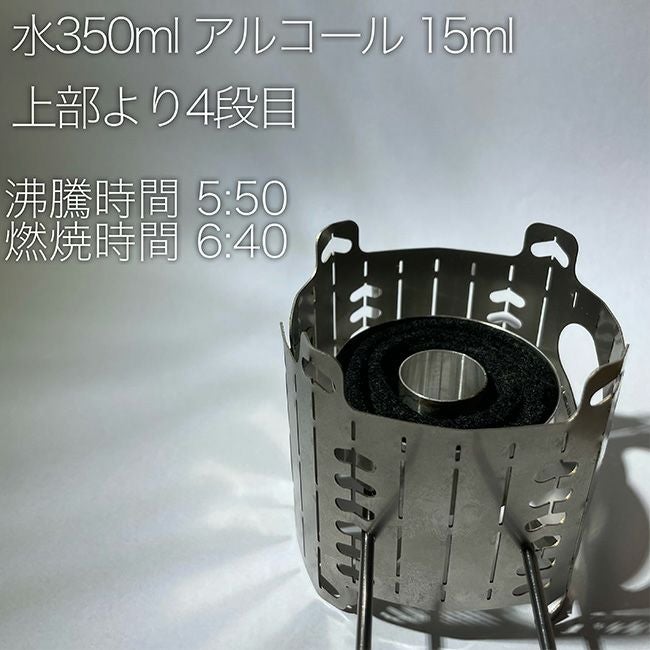 地面に直置きから6段のペグホールまでを使用して火元の高さを調節することにより 固形や液体燃料、焚火など多種の燃料での温度調節が可能になりました。