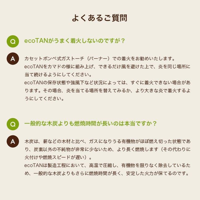 (※)市場に多く流通するヤシ殻炭やオガ炭と異なり、着火剤を含む化学性物質を一切使用しておりません。