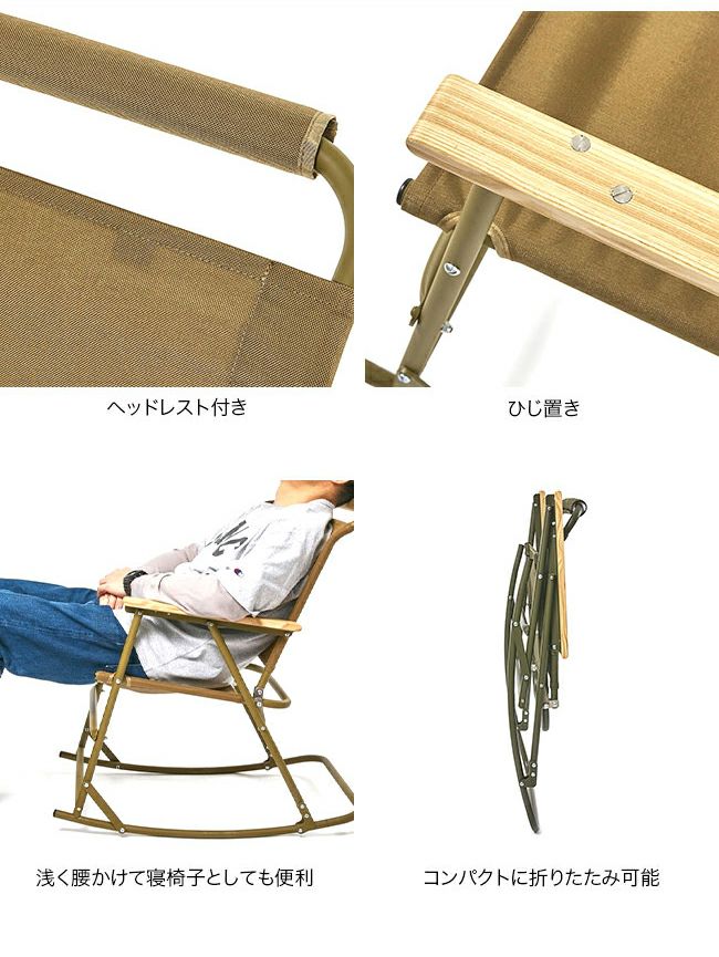 折りたためるロッキングチェア自体が珍しいのですが、 ヘッドレストを備えたアルミ製という点も踏まえると 他には類を見ない製品かと思います。