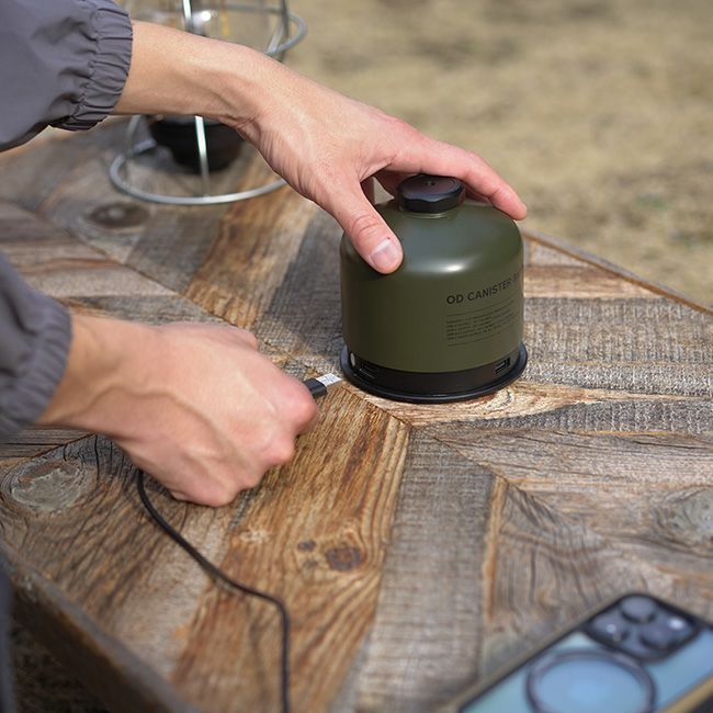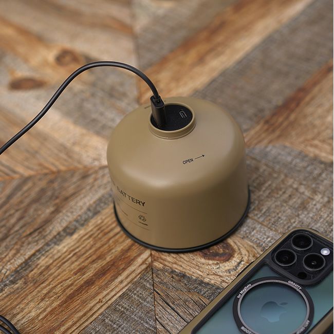 キャンプテーブルに置いた際、どの向きからでも簡単に充電口にアクセスしやすい位置に充電ポートを配置。