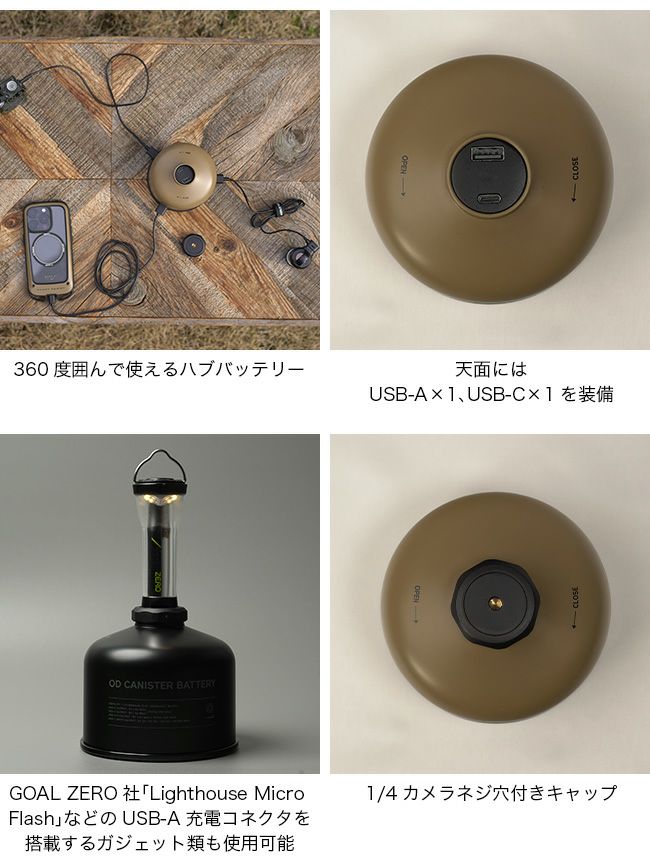 また、GOAL ZERO社「Lighthouse Micro Flash」などのUSB-A充電コネクタを搭載するガジェット類もご使用いただけます。