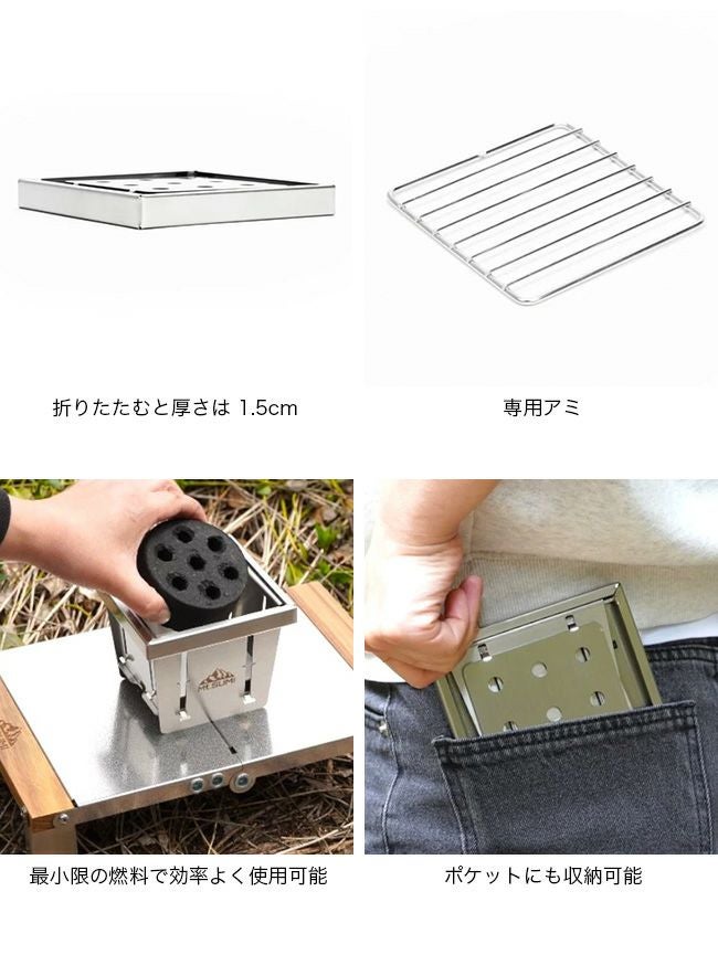 また円型の成形炭が一つ入る設計で、最小限の燃料で効率よく調理ができるため、荷物を減らしてキャンプを楽しみたい方にもおすすめ。