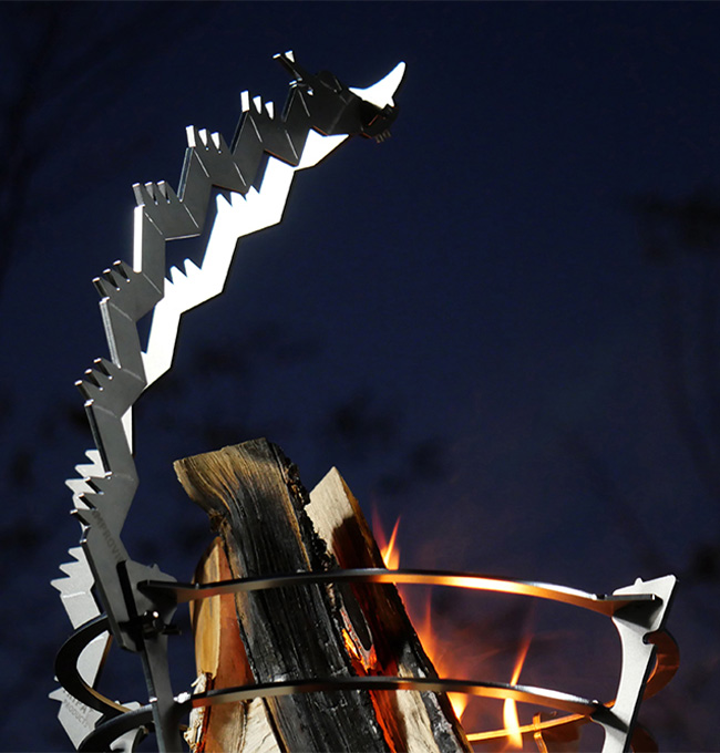GURU GURU FIRE のツノ部分と差し替えることで、いつもの焚火に厳めしい龍が出現。