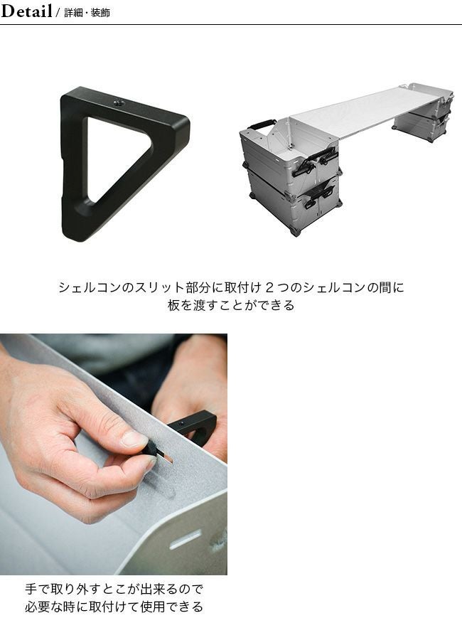 シェルコンのスリット部分に取付け2つのシェルコンの間に板を渡すことが出来ます。
