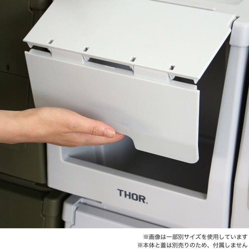 “棚”にスポットを当て、THORが新しく提案するSTACKING SHELF CONTAINERシリーズの20L専用の扉パーツ。