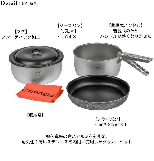 2∼3人分の調理をするのに対応する2サイズのソースパンとフライパンがセットになった中型のクッキングセットです。