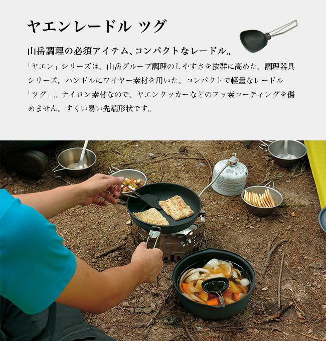 山岳調理の必須アイテム、コンパクトで軽量なターナー(フライ返し)とレードル(お玉)。