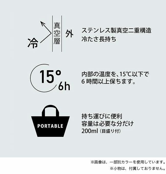 ・真空二層構造なので内部の温度を15度以下で6時間キープ