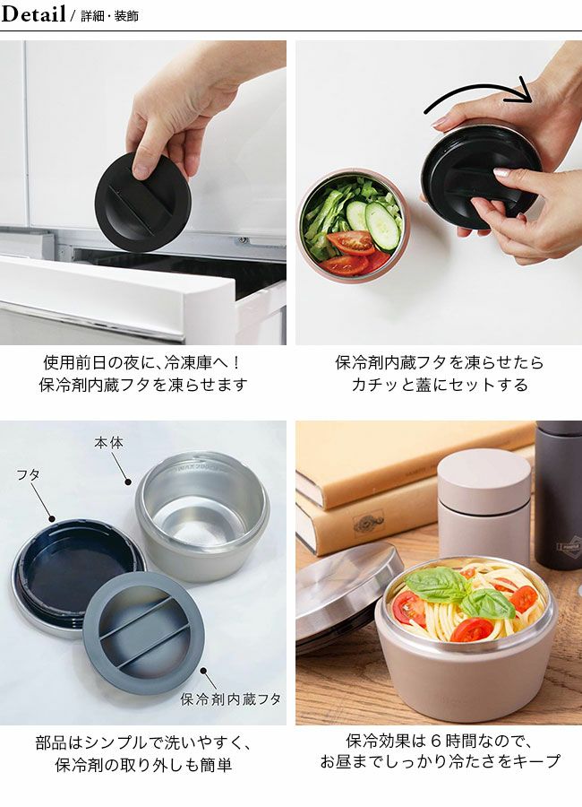 前日の夜に保冷剤内臓フタを冷凍庫で凍らせて、朝冷凍庫から取り出してフタにカチっとセット!