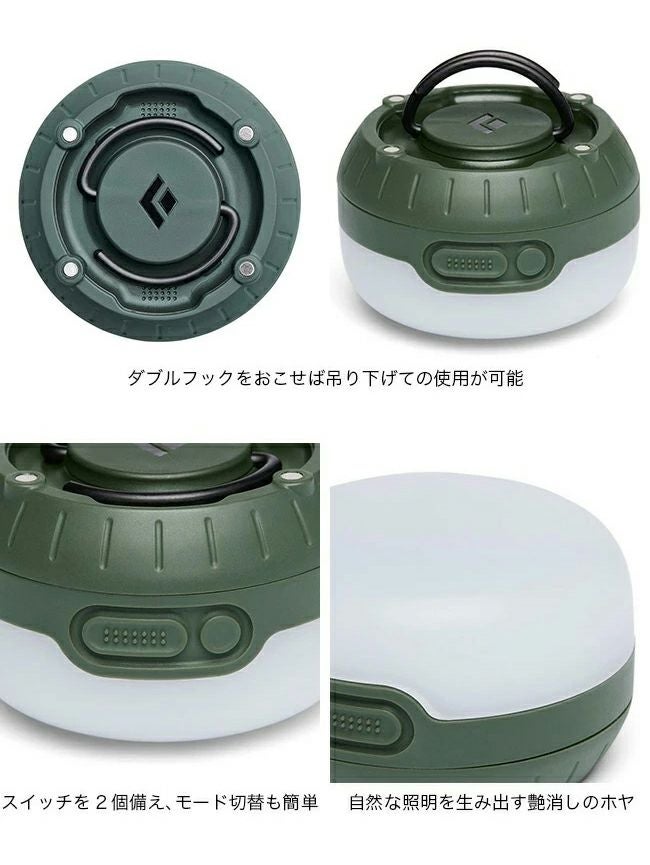 通常の照明に加え、レインボー、キャンプファイヤーといった演出照明を楽しめるランタン。