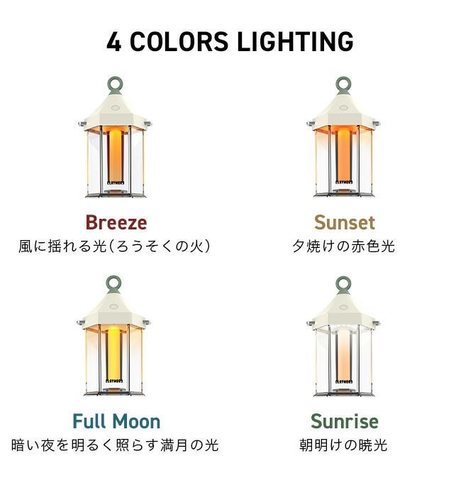 Breezeモードでは光が不規則に揺れて、炎のゆらぎを再現します。