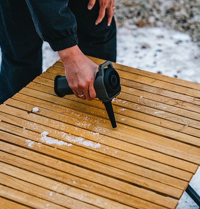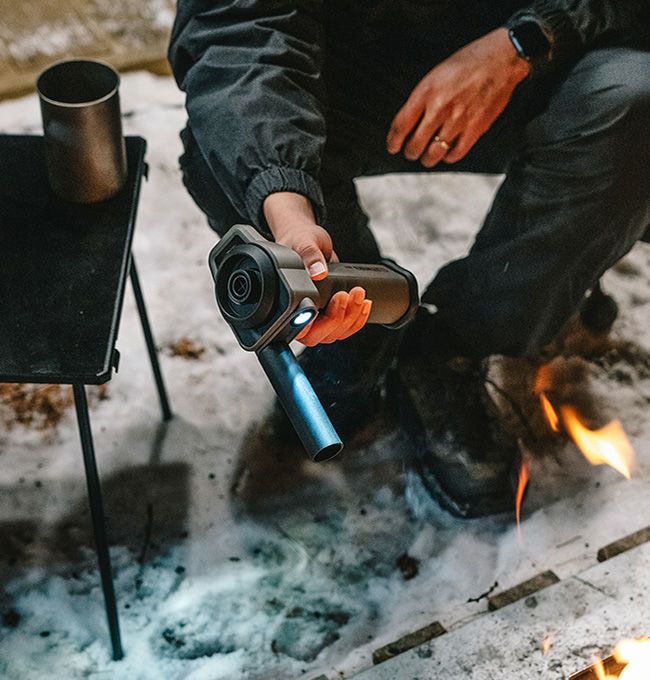 焚火の火起こしやテントの掃除で活躍するエアダスター。