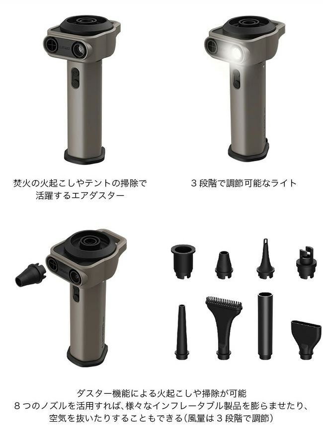 夜間の移動や暗い環境でもインフレータブルマットなどを素早く膨らませることができます。