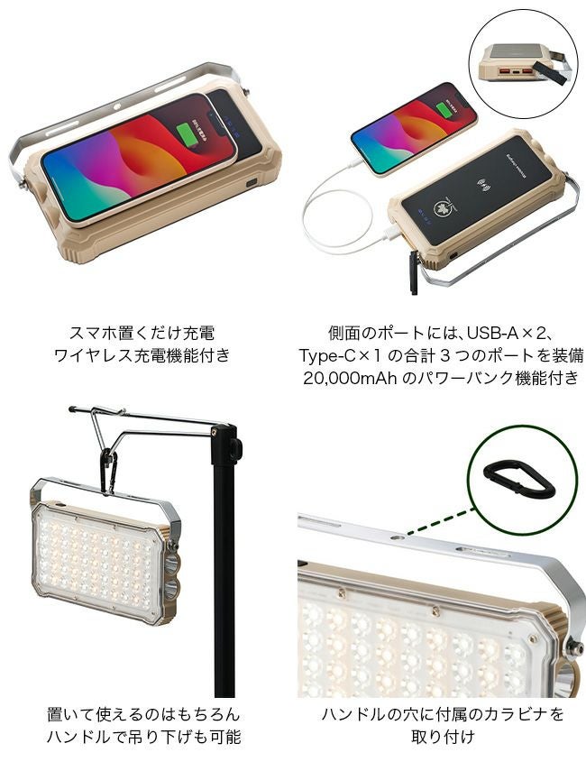 ・ワイヤレス充電・USB・Type-Cに対応!20000mAhパワーのランタン