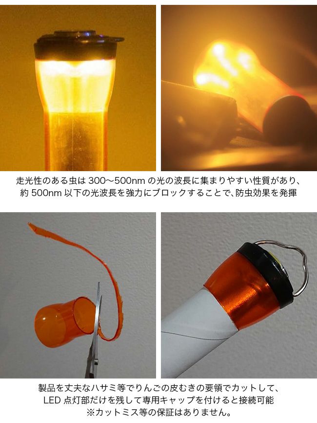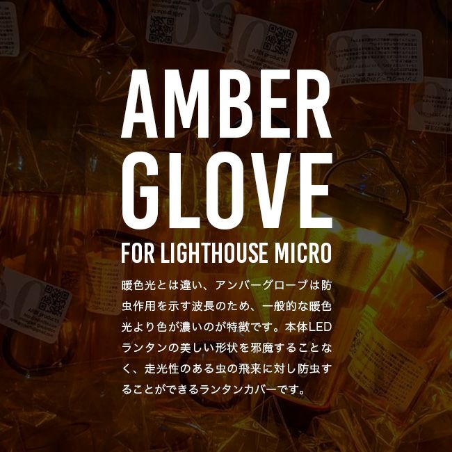 暖色光とは違い、アンバーグローブは防虫作用を示す波長のため一般的な暖色光より濃い色です。