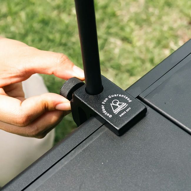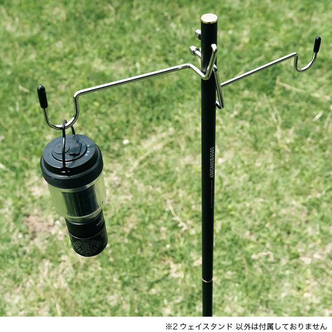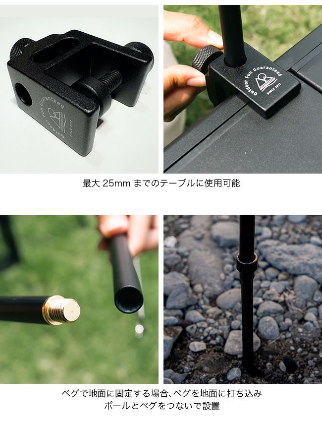2WAY STAND2.0は、テーブルに挟んで固定、もしくは地面にペグを打ちこんで固定と様々なシーンで使用できるランタンスタンドです。