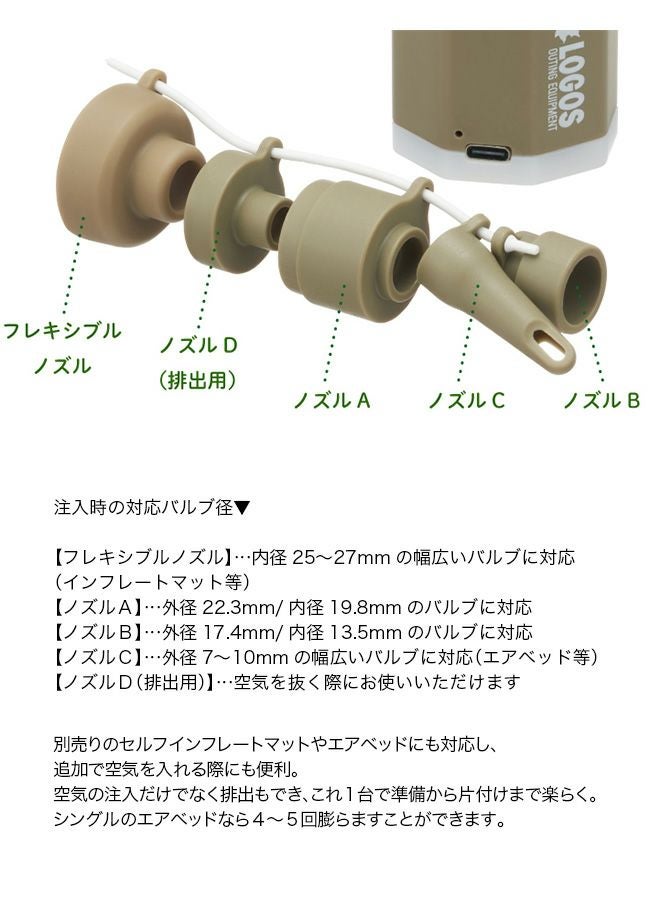 ・空気注入だけでなく排気にも使用できます