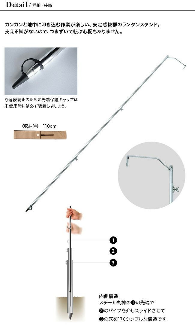 打ち込みすぎに、ご注意を!カンカンと地中に叩き込む作業が楽しい、 安定感抜群のランタンスタンドです。