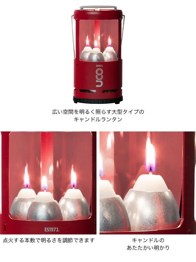 3本のキャンドルが温かさを伝え、より広い空間を明るく照らす大型タイプ。