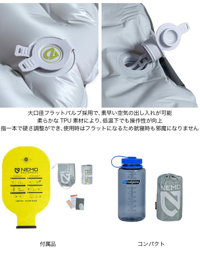 ■付属品:専用スタッフサック、コンプレッションストラップ、パッドポンプ、リペアパッチ