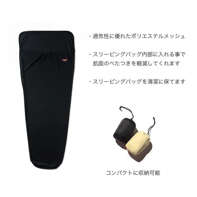 スリーピングバッグ内部に入れる事で肌面のベタ付きを軽減し、快適な寝心地にしてくれます。