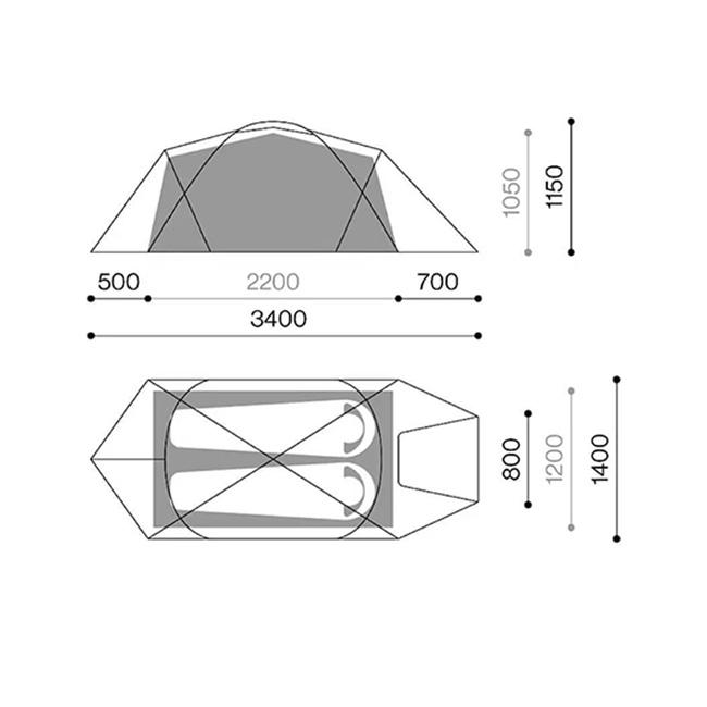 設営時/W140 × D340 × H115 cm
