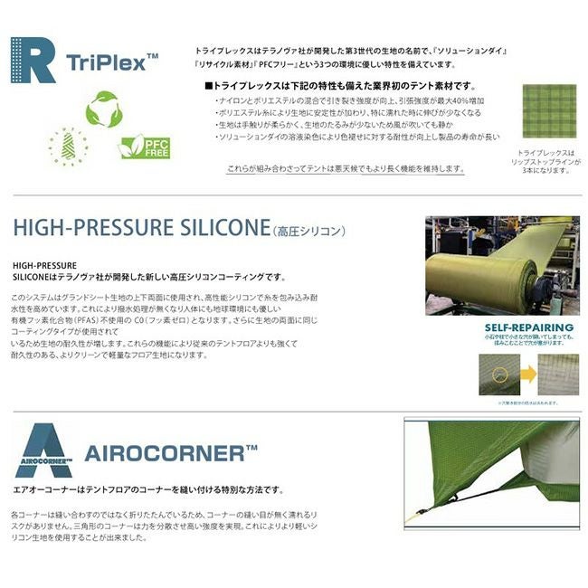 フロア:20Dトリプルリップストップナイロン(Si/Si リサイクル C0 SD)耐水圧3000mm
