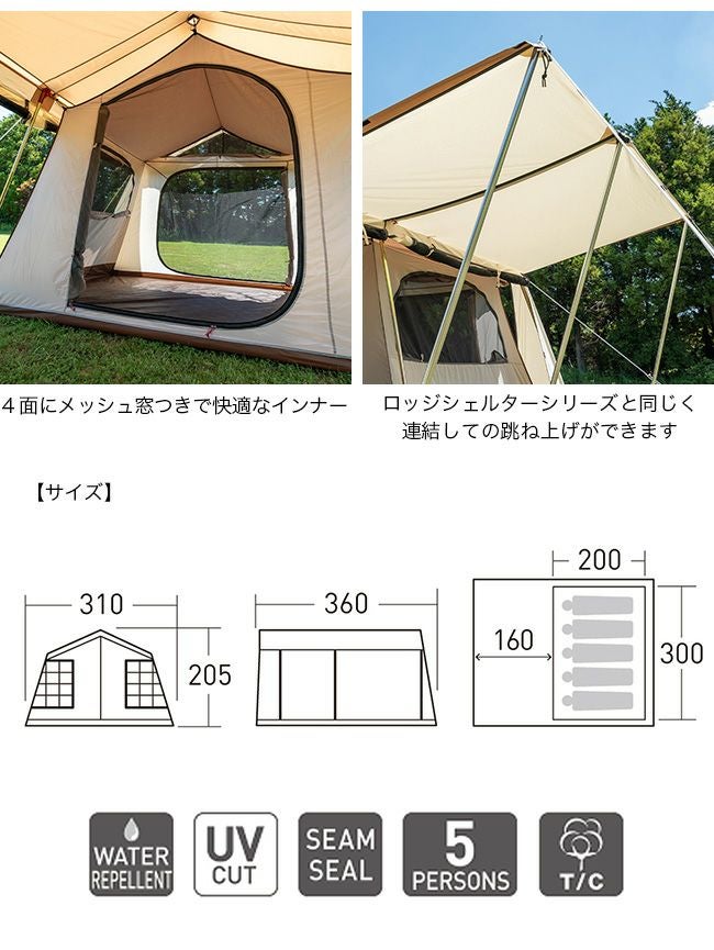 少人数ファミリーやデュオキャンプにちょうどいいサイズ感で、とても使い勝手の良いテントにT/Cバージョンが加わりました。