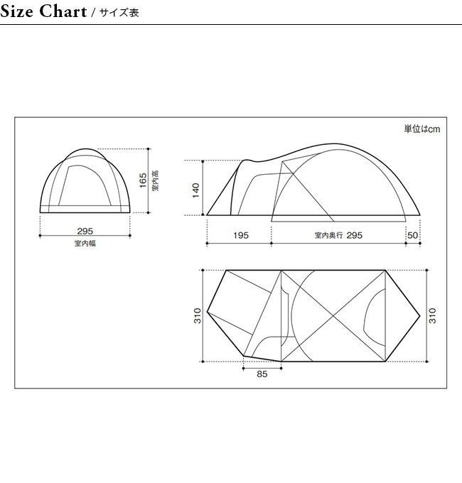 ■セット内容:テント本体、本体フレーム長(×3)、前室フレーム(×1)、ジュラルミンペグ(17cm×18)、自在付ロープ(1.4m×2、2.5m×2、2又5m×2)、リペアパイプ、キャリーバッグ、フレームケース、ペグケース、取扱説明書