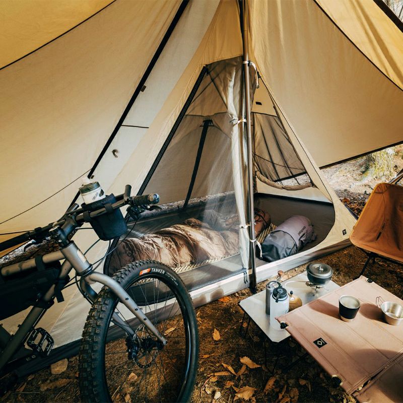 ギギ1にセットすればハーフインナーとして利用できます。使用人数が2人であれば、リビングスペースと就寝スペースを両立できるので、ミニマムなキャンプが楽しめます。
