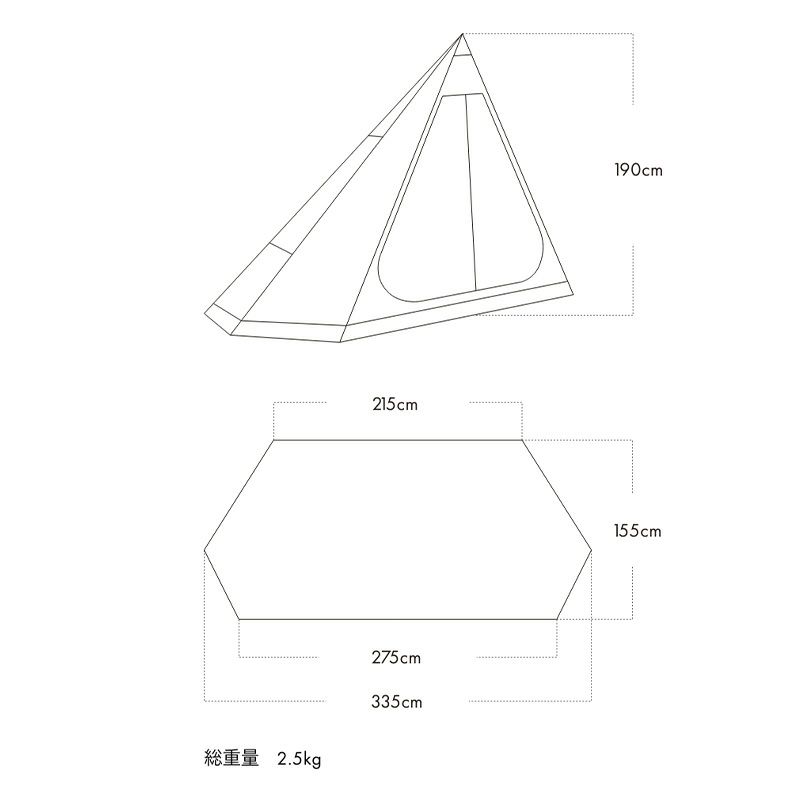 335cm×155cm×高さ190cm