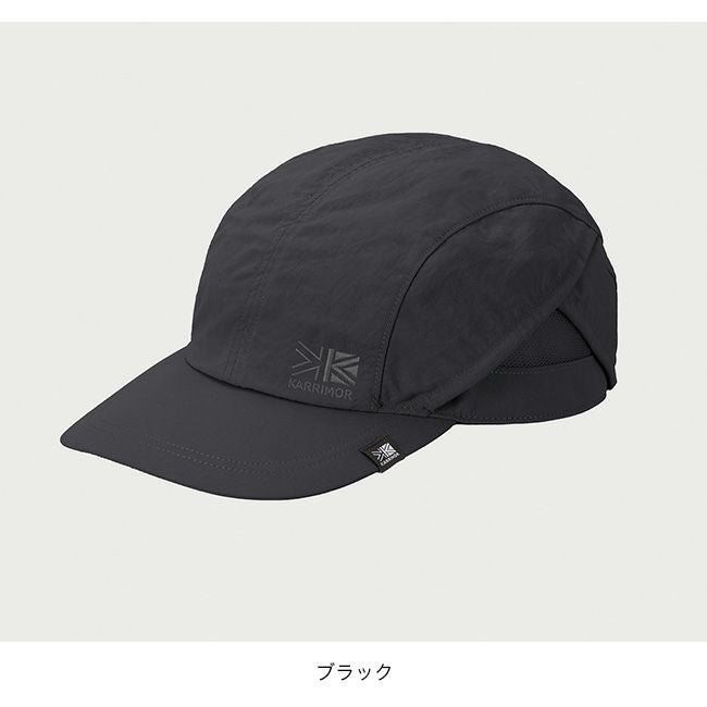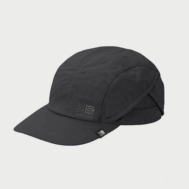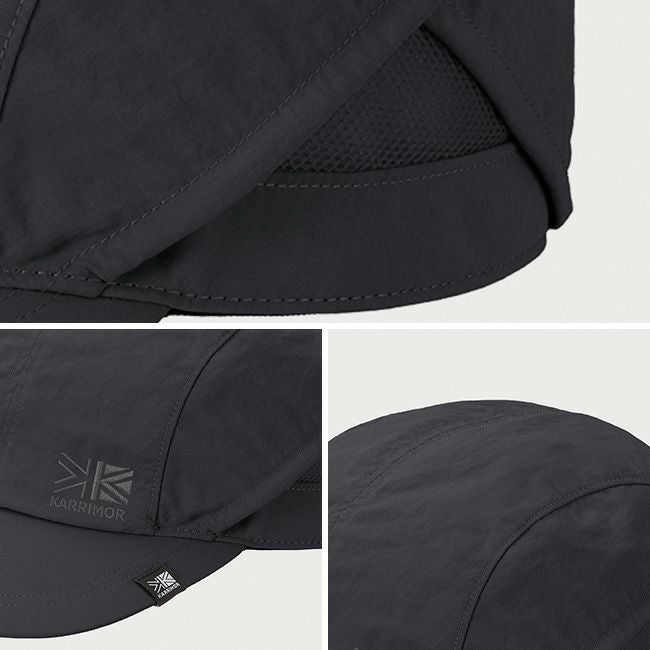 UVカット性に優れた本体生地(UPF50+)には耐久はっ水加工、頭周りの汗止めテープには抗菌防臭加工(SEK認証)が施されている。