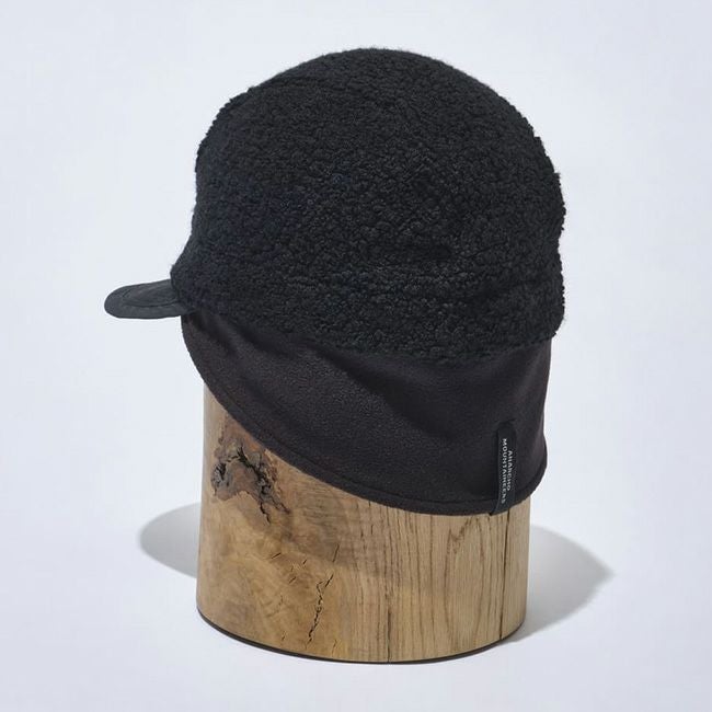リサイクルウールボアのキャップは、クラウン(ウールボア)、ブリム(タスランナイロン)、耳当て(フリース)といった素材コンビネーションも見どころ。