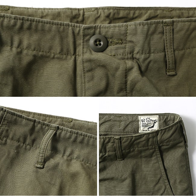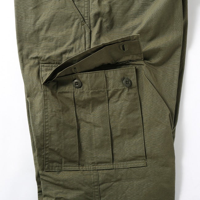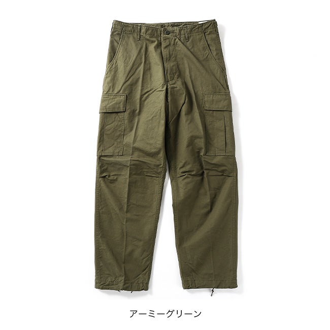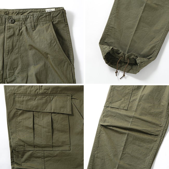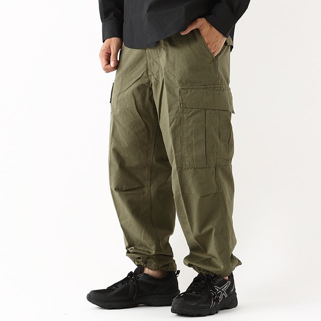 60年代のベトナム戦争時に採用された「ジャングルファティーグ」をベースにデザインされており、太めのシルエットが特徴。