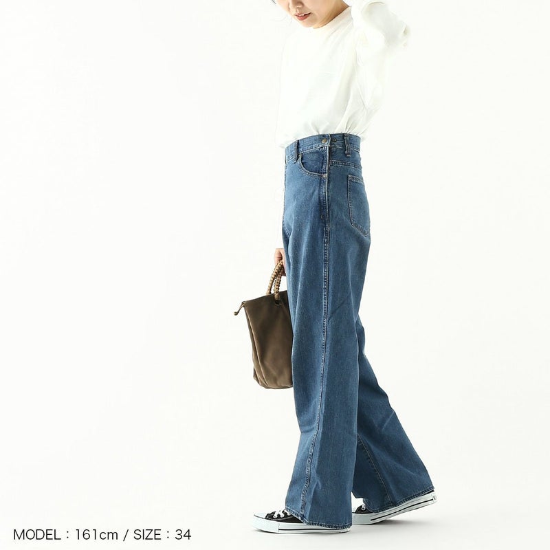 ハイウエストのややワイドめのシルエットで女性らしく。