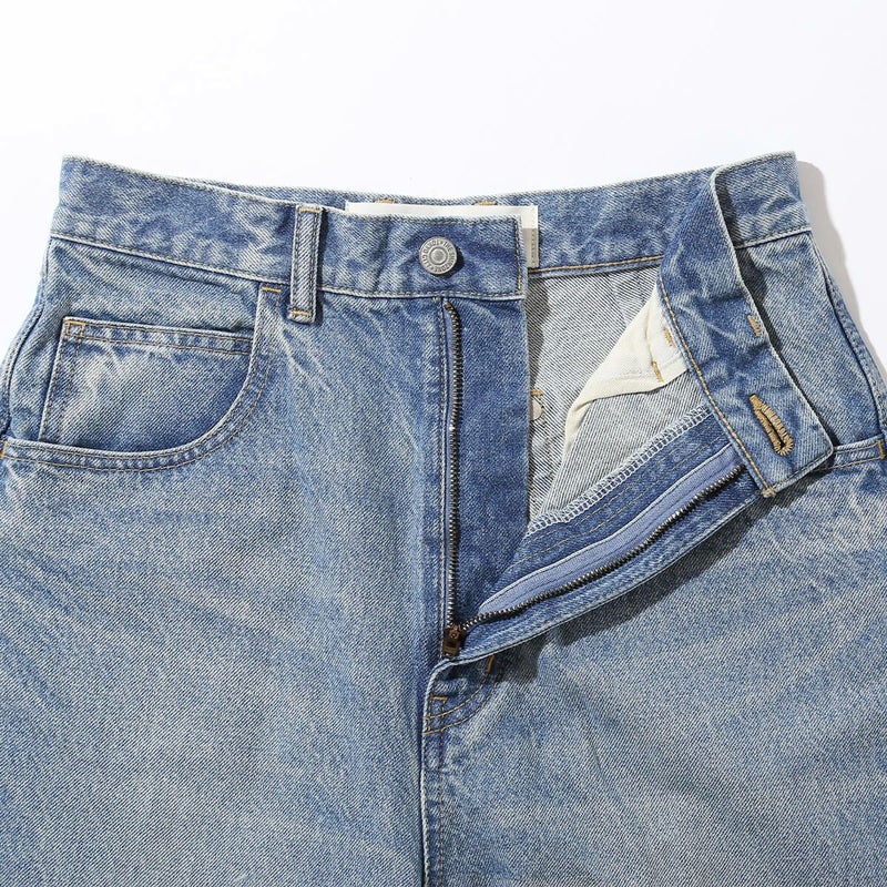 従来のキャロットデニムから裾幅を広げ、股上を落とすことで、余裕を感じさせる遊び心のあるシルエットに生まれ変わりました。