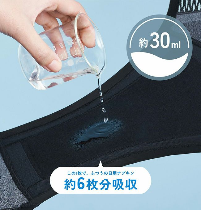 30mlの吸水量を実現し、漏れを防いで心地よい肌触りを持続する抗菌防臭加工を施した4層構造の吸水面が不快感を軽減します。