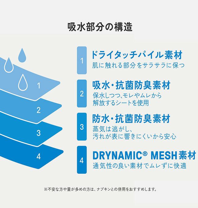 ・ドライナミックメッシュをベースに開発された吸水ショーツ