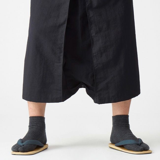 スカートの利便性には以前から注目しており、実を言うと、凌を展開する前から性別に関係なく穿けるスカートの企画に度々チャレンジしてきたほどのスカート好きです。凌を展開するにあたり、そのコンセプトでもある日本の意匠を取り入れるという部分で、袴とスカートをミックスさせたデザインが思い浮かび、非常にクセが強いのですが、だれが見ても和を感じることができ、凌とわかるデザインのスカートが出来上がりました。
