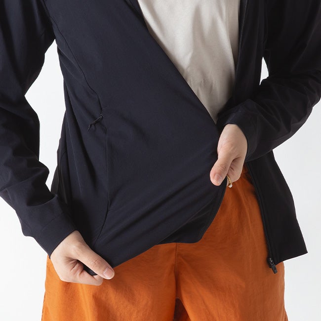 裾脇と袖の手のひら側は平ゴム仕様で、フィット感を高めています。