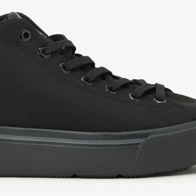 雨の日にも使えるカジュアルスタイルのミッドカットシューズ