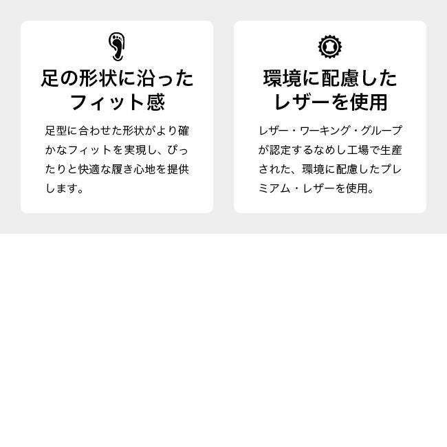 環境認証団体LWGの認証を受けた製革工場から調達した環境に優しくしなやかなレザーアッパーを使用。