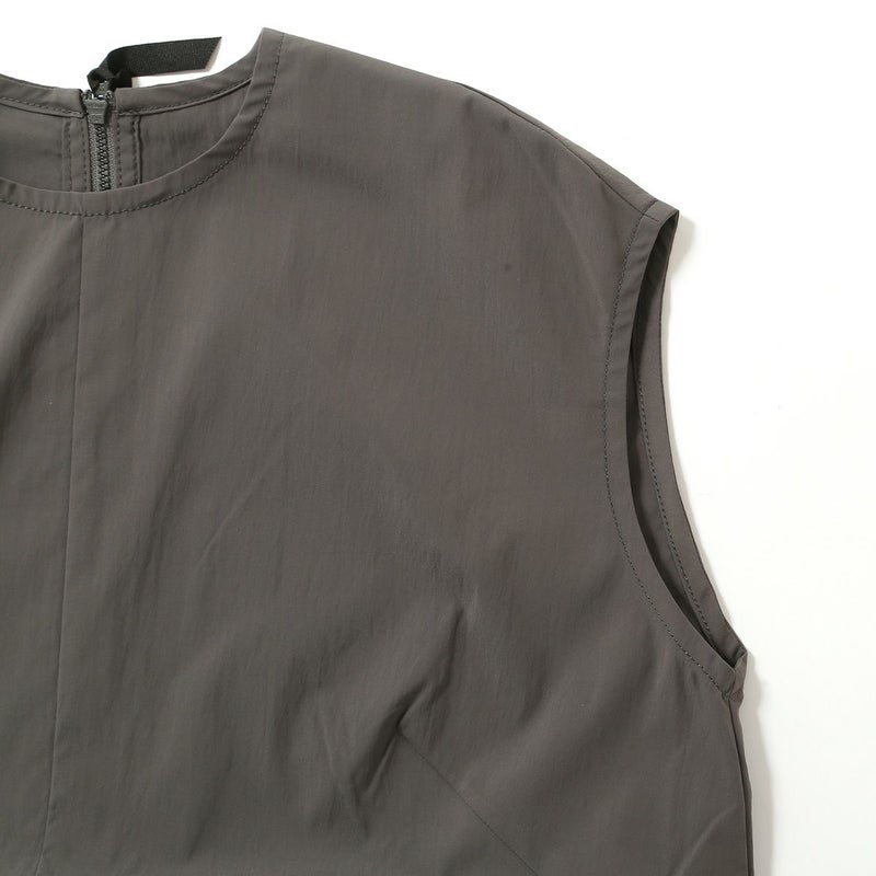 ポリエステル素材を使用した、ノースリーブワンピース。